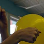 - Blow up the balloon but do not tie it. Hold it closed and have a friend tape the balloon to the straw.