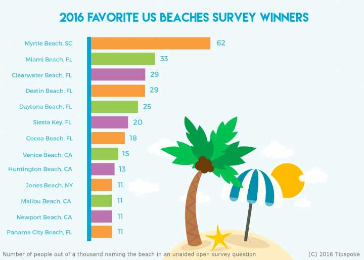 We harnessed the power of Google Consumer Surveys to ensure a true unbiased result and got over 1,000 responses to uncover this selection of 2016's top US beaches. Every single one of these beaches is a favorite and each one has something special to offer!