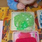 - Mix the first three ingredients listed together for each of the colors that you desire to paint with.