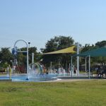 Activity OverviewOpen through the summer, this splash park is the perfect way for kids of all ages to cool down during the extreme heat of summer. To the delight of children of all ages, water shoots up out of the ground and streams from pipes and spouts, bubbles up from the ground or falls from waterfalls. The site also features a playground next door, some fields, and a picnic area assure you at least a few hours of occupied children. Things to DoSplash around and cool off in the large water park. The water is extremely shallow — no deeper than a puddle — so it's safe for kids (and adults) of all ages. Bring a picnic and enjoy lunch or an early dinner at the picnic area. Toss a frisbee or ball around in the open fields. Play on the adjacent playground Campbell Green Splash Park Insider Tips
