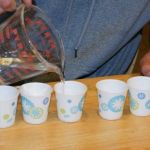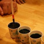6. Dip the straw into the red water glass and cap the end of the straw with your thumb.