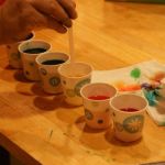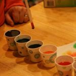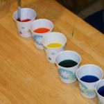 2. Use food coloring to dye each glass of water each with a different color of the rainbow.