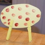 2. Use your index finger and your brown paint to stamp several finger prints around the surface of the yellow oval. Allow to dry. When dry, repeat this process on the other side of the yellow oval.