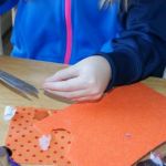4. Fold a piece of felt and cut a triangular shape out of the felt to form a a beak. Glue the beak into place just below the eyes.