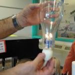 2. Place the lit piece of paper in the wide mouthed bottle.