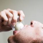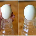 3. Immediately place one of the hard boiled eggs on top of the mouth of the bottle.