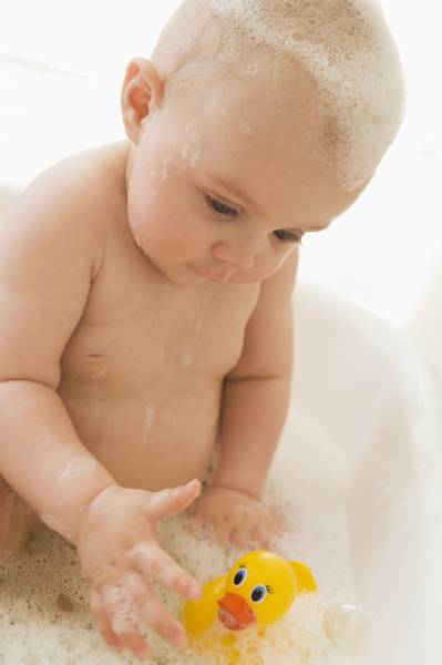 • Use non-slip strips or a bathmat in the bathtub, and use a faucet protector to avoid bumped heads.