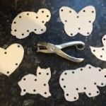 3. Take each foam shape and use a hole punch to punch hole around the edge of the foam. Make sure that you punch your holes far enough in from the edge to avoid easy tearing and about a finger width apart along the edge.