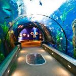 - The largest exhibit is the "passages of the deep", where visitors can walk through acrylic tubes surrounded by deep water marine animals, such as sharks, rays and rock fish.