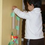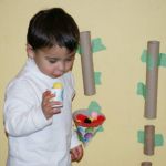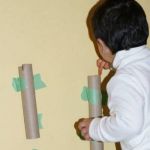 1. Simply tape some paper tubes vertically onto a small section of wall space with your painter's tape. Tape two together for longer tubes or use toilet paper tubes and paper towel tubes for shorter ones. Tape them to the wall so that the tops are within in your toddler's reach.
