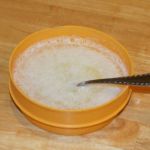 5. Gooey white blobs will be left behind in the strainer.