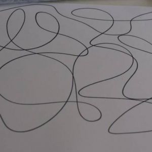 1. Use a pen or a pencil or marker in a dark color to draw a loopy and overlapping squiggle that covers the entire piece of paper.