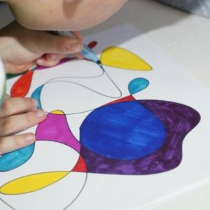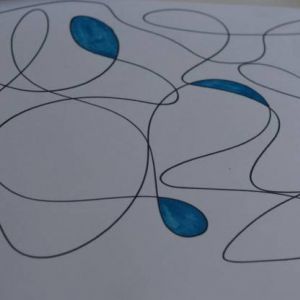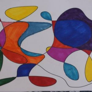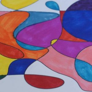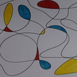 Create abstract art from a unique freehand squiggle that you draw on a piece of paper and color them in with vibrant and distinctive colors. When you overlap your squiggling line all over a piece of paper and you will find that the intersecting lines form a variety of shapes.