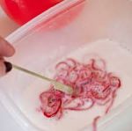 - Lightly dip the strings into the Mod Podge and skim away excess liquid.