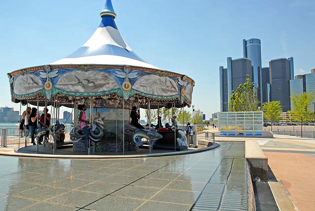 Another popular Detroit landmark is Philip A. Hart Plaza in the heart of downtown, which is often used for festivals and concerts. It provides gorgeous views of the Detroit River, Belle Isle, and the neighboring city of Windsor, Canada, and also showcases public artwork and an impressive fountain that is illuminated at night.