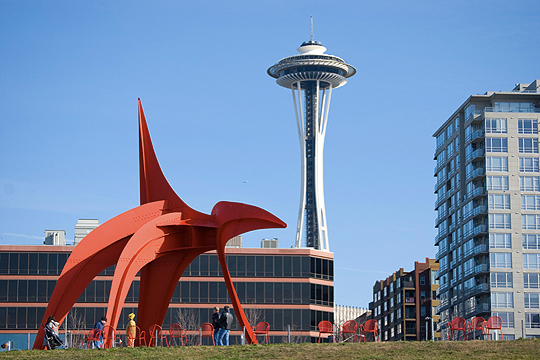The most popular art attraction in Seattle is undoubtedly the Seattle Art Museum, which houses a collection of nearly 25,000 pieces of art in three different facilities spread throughout the city. Its main building in the heart of downtown Seattle contains artwork from around the world, including modern art, Native American art, and European art. Its other locations are the Seattle Asian Art Museum in Volunteer Park and the Olympic Sculpture Park on the city's waterfront, which showcases pieces by famous sculptors like Richard Serra, Louise Bourgeois, and Alexander Calder.